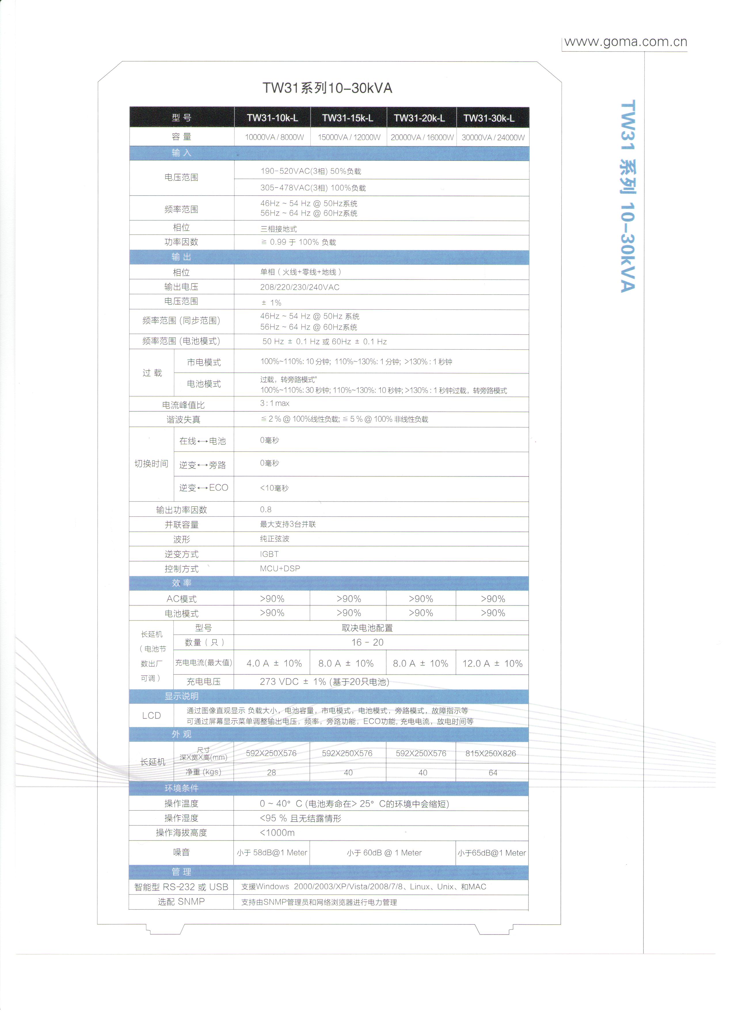 TW31系列UPS (三進單出型 10~30KVA)